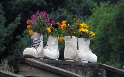 Mit tegyünk a régi bakancsokkal és csizmákkal a kertben? Tegyünk bele virágot! :-) Ugye milyen jól néznek ki?